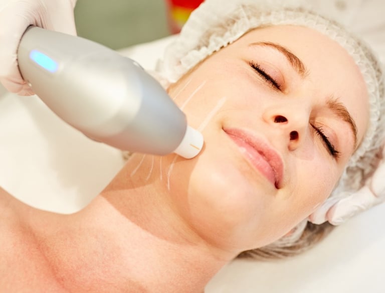 Procedimento de ultrassom microfocado para lifting facial não cirúrgico, promovendo firmeza e definição com estímulo de colágeno